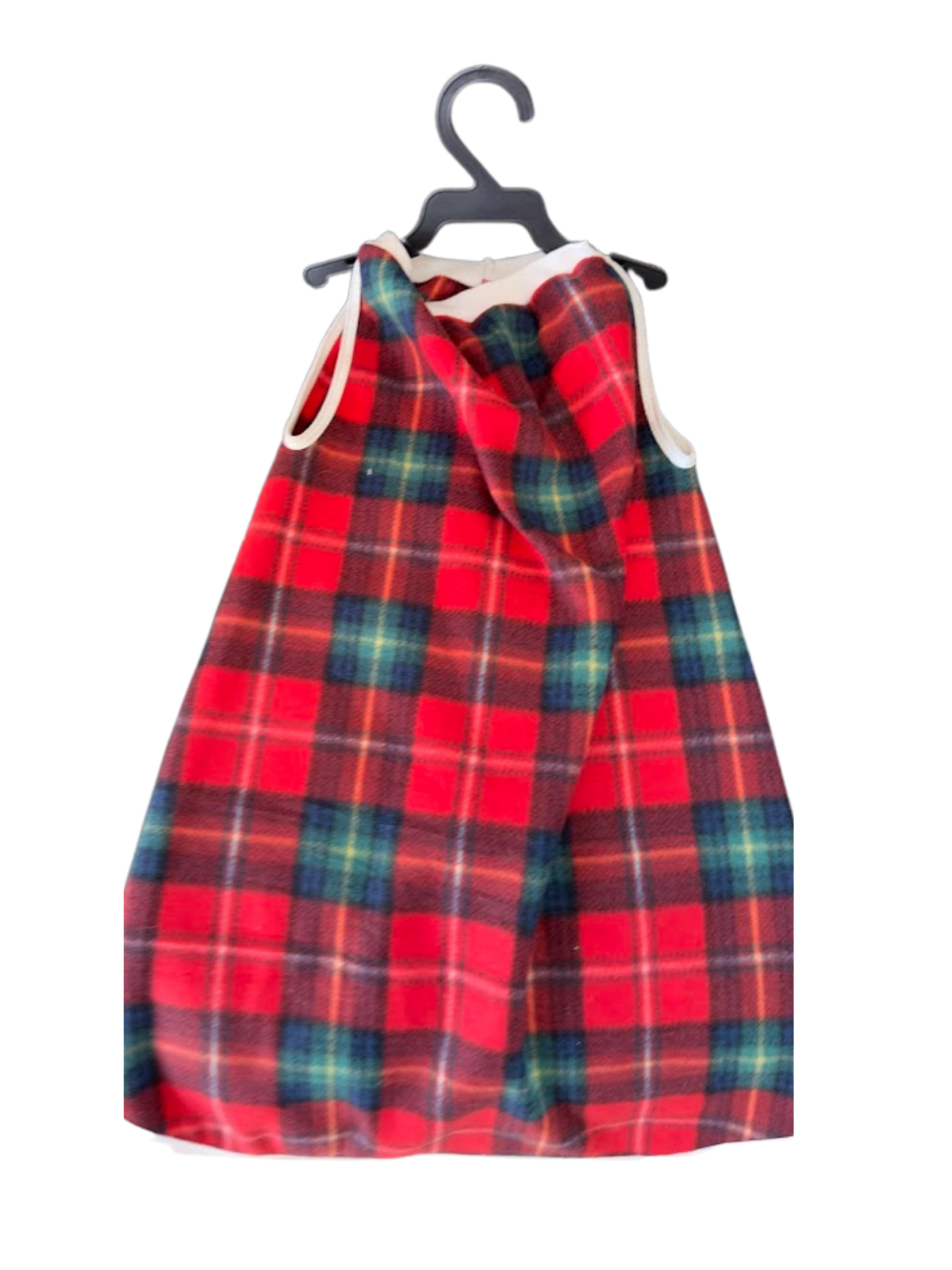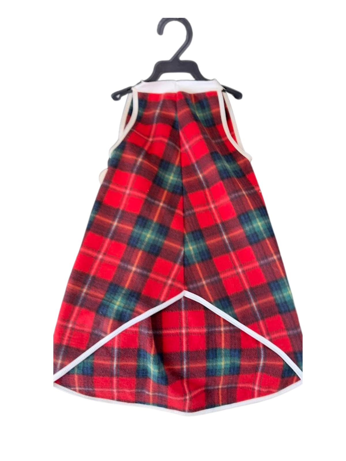 O design em xadrez vermelho e verde é atemporal e ideal para passeios no inverno ou para aquele momento de descanso em casa. O acabamento com viés branco garante um caimento perfeito e durabilidade. Vista seu pet com conforto sem abrir mão da elegância!